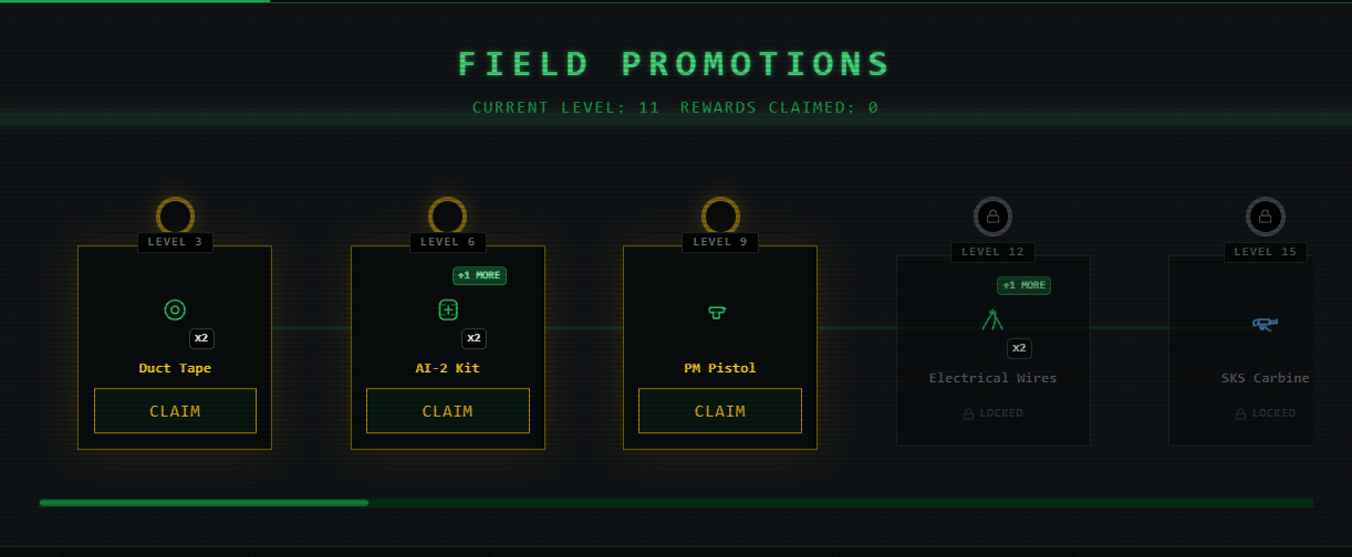 No problem! Really enjoying the game. I've got one more idea, when you go into the live view, while your character's walking, it'd be neat to have some duck-hunt style enemies pop up. I'm thinking on the Cordon, you could have little hatchet scavs pop up behind the cars sometimes. On the Factory, snipers in the windows with a lens flare, in the Forest, ducks fly up from the bottom or dogs run across the screen, maybe some PMC's behind the walls in the Labs. Just spot em and click them in time for some random loot. Would give the player something to watch for while waiting for the next choice to pop up