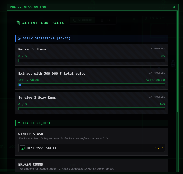 Zone Idle is a Text-Based Singleplayer Extraction Simulator game inspired by the Tarkov and Stalker worlds and games.