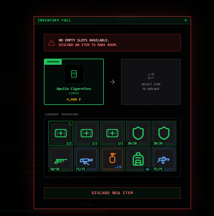 Zone Idle is a Text-Based Singleplayer Extraction Simulator game inspired by the Tarkov and Stalker worlds and games.